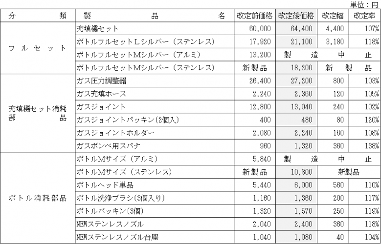エスプーマアドバンスTAver.の価格改定について