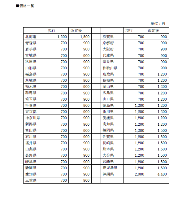 さて、昨今の「物流の2024年問題」による労働条件の厳格化や燃料の高騰による運送会社の料金改定に伴い、お客様には大変に心苦しいお願いとなりますが、以下の通り弊社商品における配送料金の改定を行わせて頂きます。